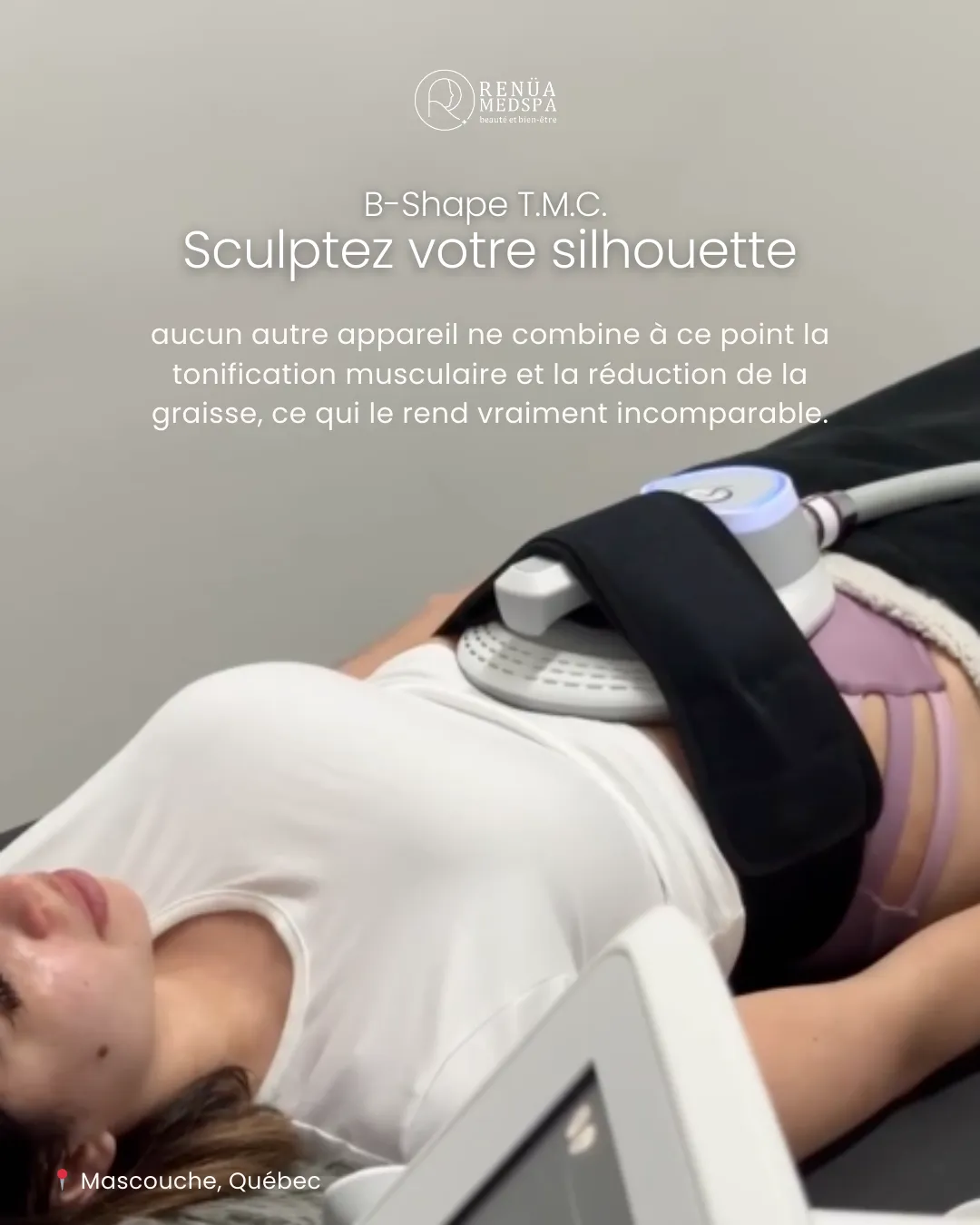 Le B-Shape TMC est un soin non invasif et innovant qui raffermit les muscles, réduit les graisses localisées et tonifie la peau. Grâce à la technologie TMC (Transcutaneous Muscle Stimulation), il agit en profondeur pour remodeler votre silhouette tout en respectant votre corps.