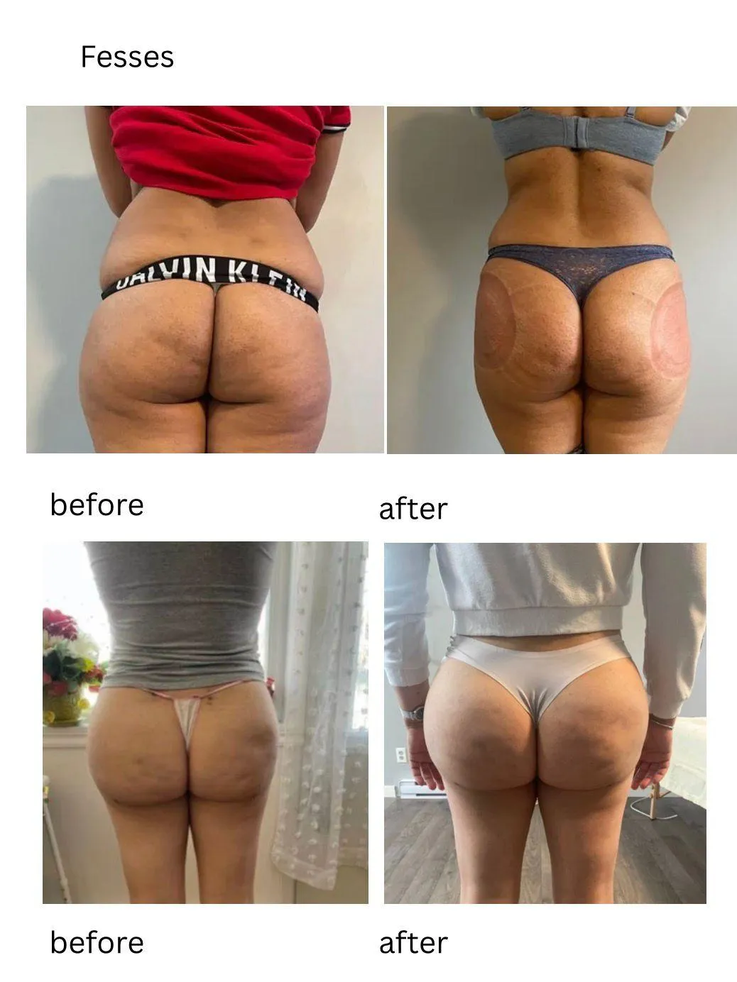 Oui. Le lifting colombien se combine parfaitement avec le B-shape, ou les protocoles visage (HydrofaciaI, LED, Peeling) pour maximiser la silhouette et l’éclat de la peau.